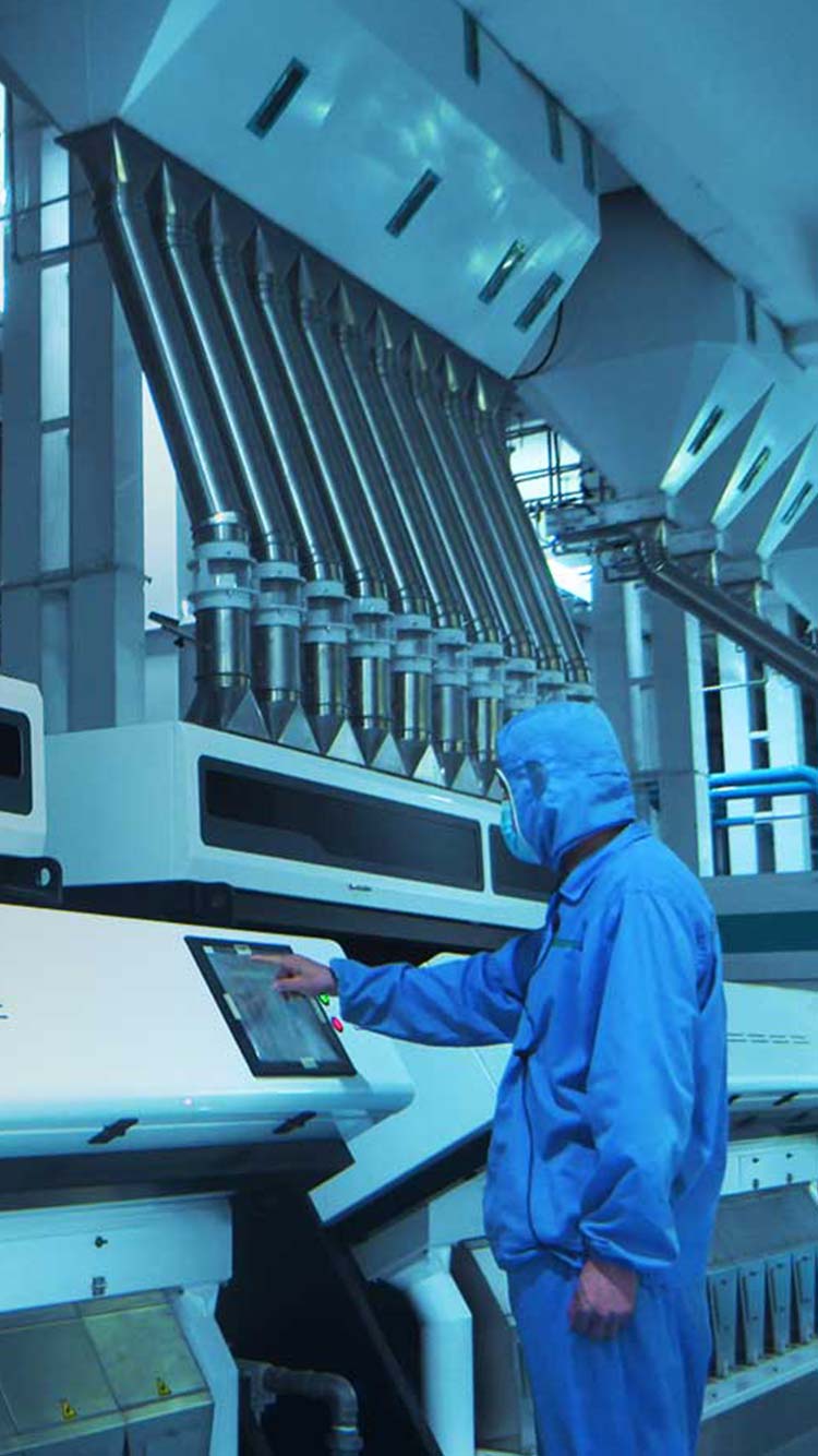 在生產(chǎn)加工環(huán)節(jié),采用國際先進生產(chǎn)線,每粒米都需歷經(jīng)碾、刷、拋、選全流程加工,輕磨輕拋,適度加工,最大保留米中營養(yǎng);國際先進雙紅外色選機,通過粒型、水分、色值等全方位篩選,保證大米品質;整個大米加工0接觸、0環(huán)節(jié),全部采用智能化管理,健康安心。